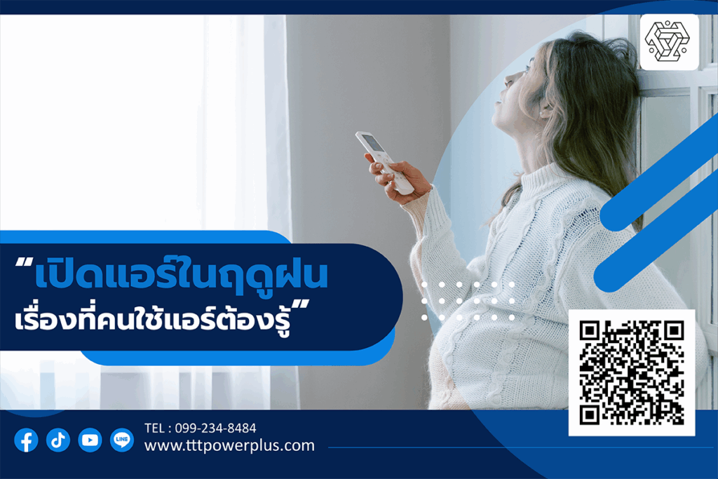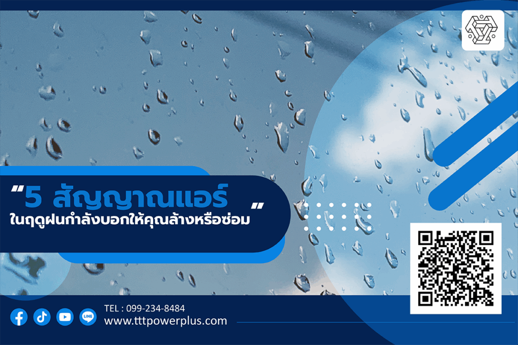 บทความ สาระน่ารู้เรื่องแอร์ “5 วิธีป้องกันปัญหาแอร์ในฤดูฝน ที่เจ้าของบ้านทุกคนควรรู้” อ่านต่อ “เปิดแอร์ในฤดูฝนได้ไหม? เรื่องที่คนใช้แอร์ทุกบ้านต้องรู้” อ่านต่อ “5 สัญญาณแอร์ในฤดูฝนกำลังบอกให้คุณล้างหรือซ่อม” อ่านต่อ